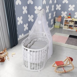 La collezione Marilyn è dotata di un modello di lettino di tipo “evolutivo”, che può essere utilizzato dal tuo bambino, dal giorno in cui nasce, fino a 5 anni di età ed oltre. Questo modello “cresce” insieme al tuo piccolo. Si trasforma, infatti, in diverse soluzioni, così, è possibile ottenere da una culla tonda, tenera e accogliente, un lettino ovale più spazioso, un box ed anche due poltroncine. La collezione è realizzata in quattro varianti di colore: bianco, verde/naturale, sabbia e faggio naturale ed inoltre comprende anche il bagnetto, il settimanale, l’armadio, il comò ed il corredo tessile abbinato.BEBEX Culla Evolutiva MATRIX Bianco/Sabbia completa di Tessile Mini e Large Sabbia + Materassi mini e large
