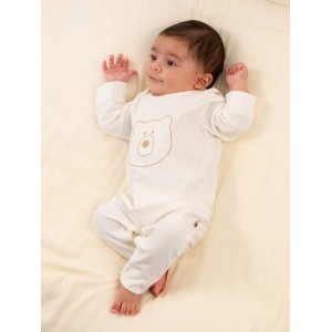 Descrizione Tuta intera con piedini integrati, studiata per garantire protezione e libertà di movimento sin dai primi giorni Ricamo orsetto