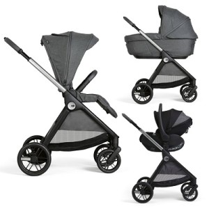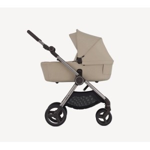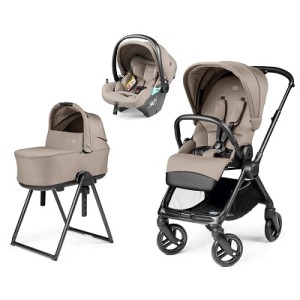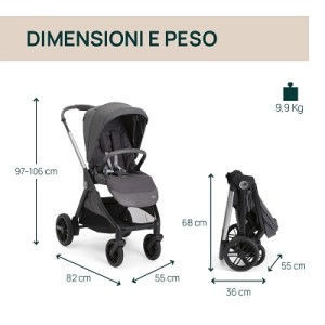 Sul leggero telaio in alluminio Self Standing con dettagli cromati possono essere montati la navicella spaziosa, interno sfoderabile e pieghevole per chiusura compatta, poi la seduta passeggino reversibile e chiudibile fronte strada e fronte mamma con schienale areato, utilizzabile fin dalla nascita, e il seggiolino auto i-Size per i primi mesi (per bambini da 40 a 87 cm di altezza, max 13 kg).