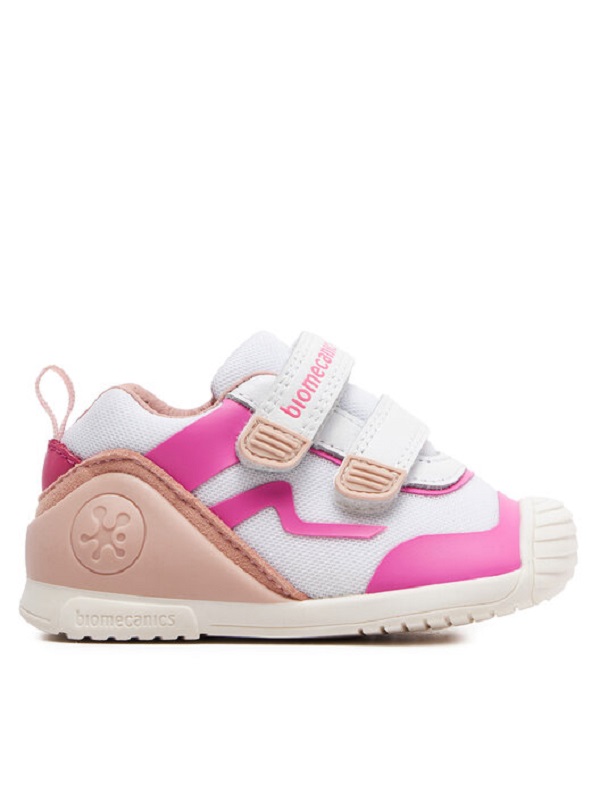 Scarpe da bambina dalla forma ergonomica e biomeccanica con la stabilità necessaria nella fase di gattonamento e dei primi passi.